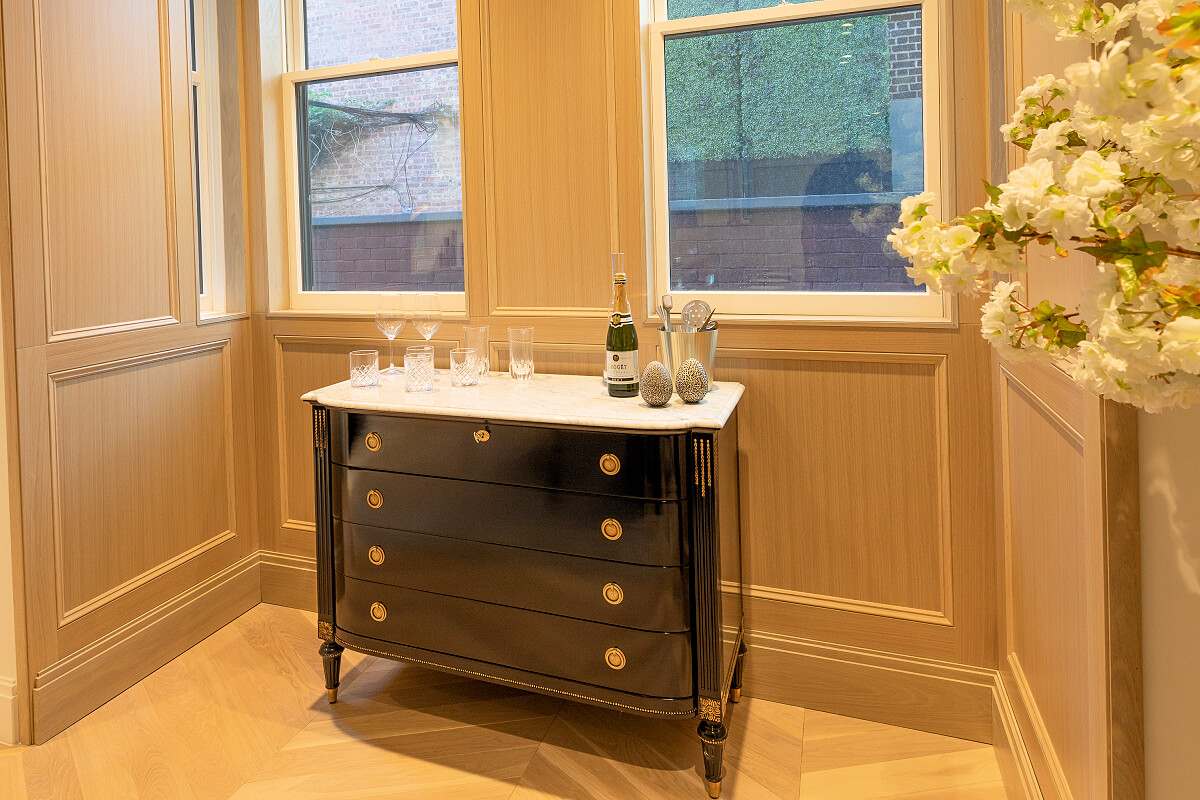 The skilled craftsman from Art Woodwork collaborated with a world-class team of architects and interior designers to deliver seamless elegance throughout this stunning 16,000 square foot Rumson, New Jersey home.